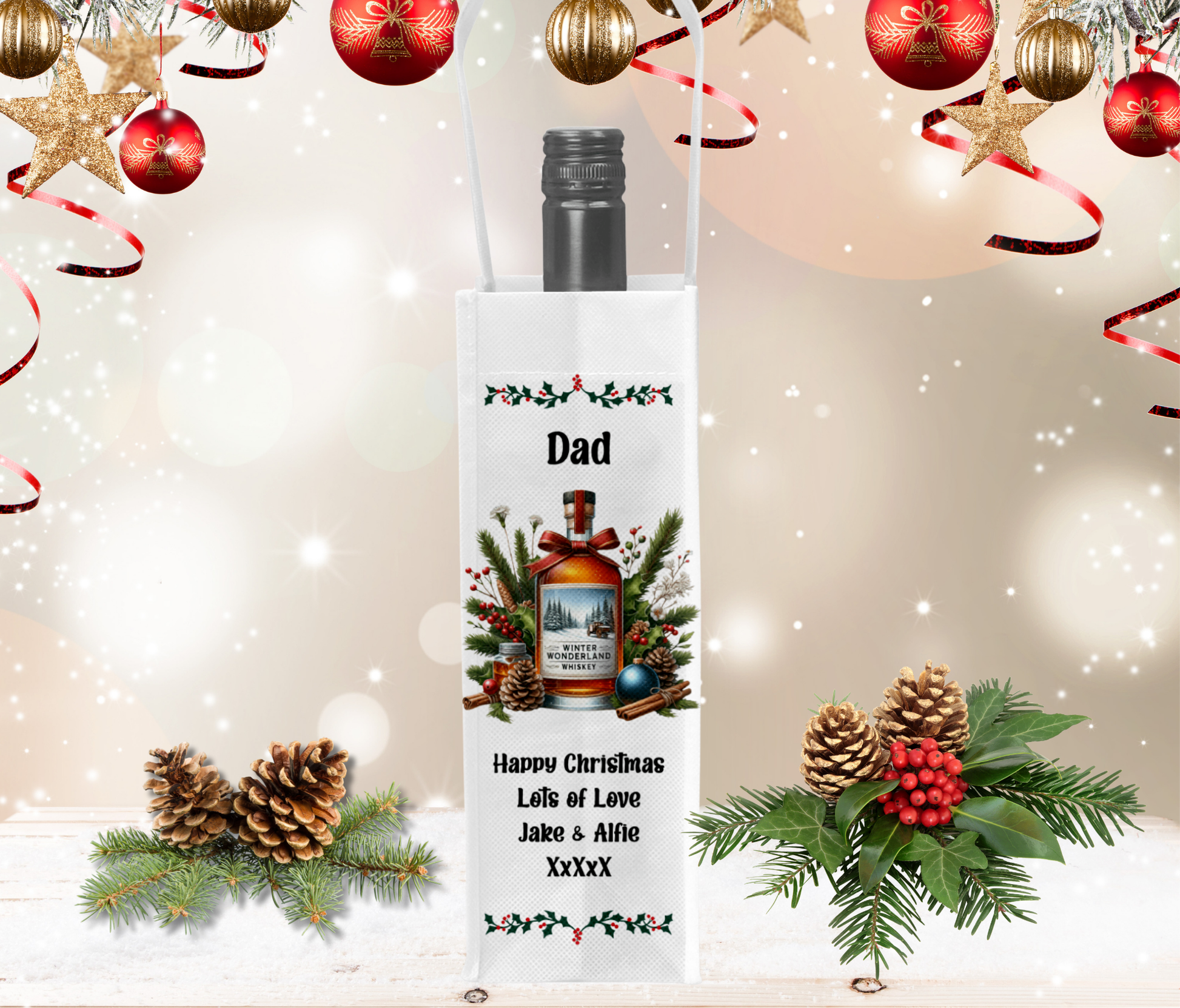 Personalised Bottle Gift Bag - Christmas Whiskey Design