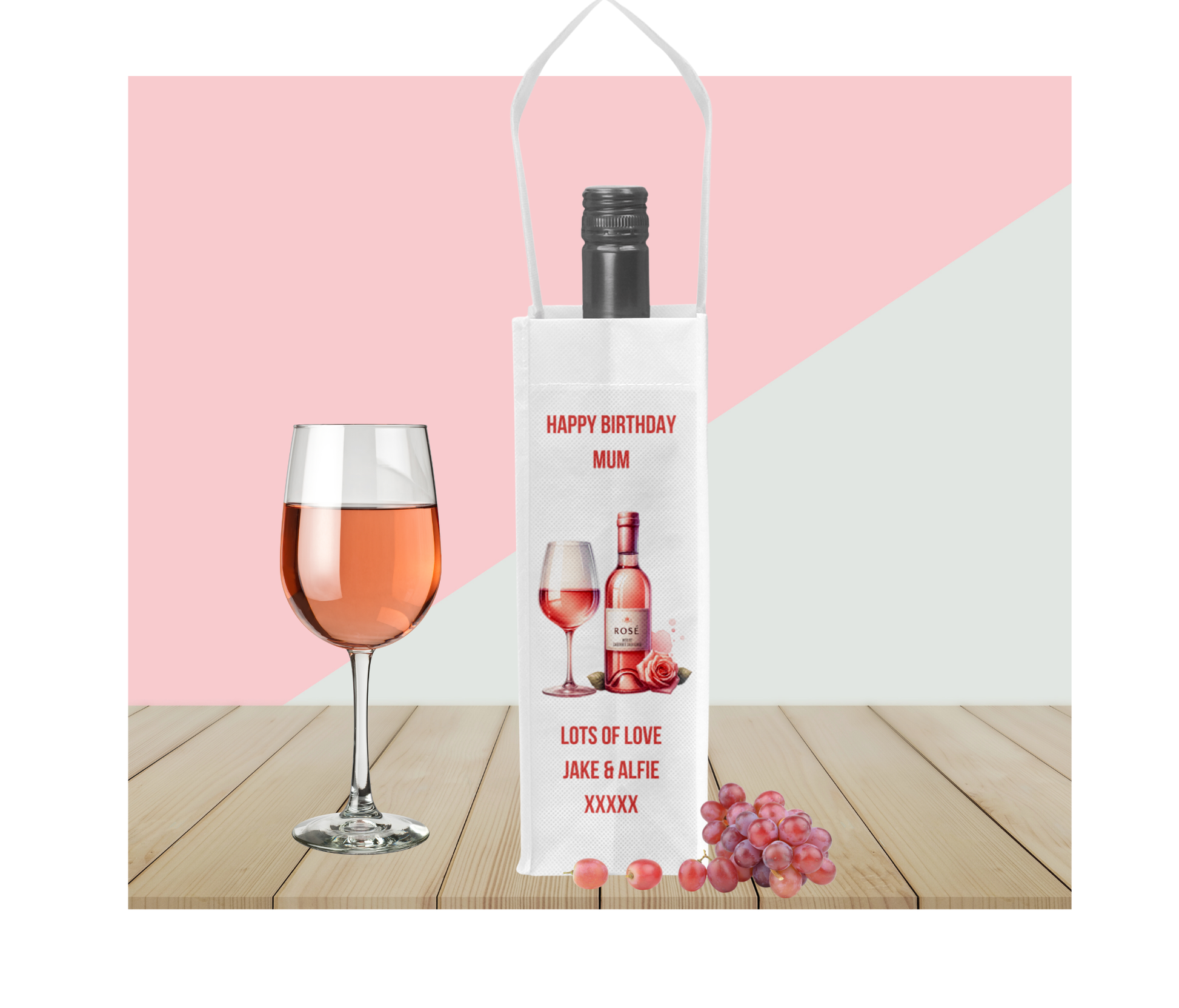 - The gift bag will hold a 75cl Bottle of Rose Wine.
