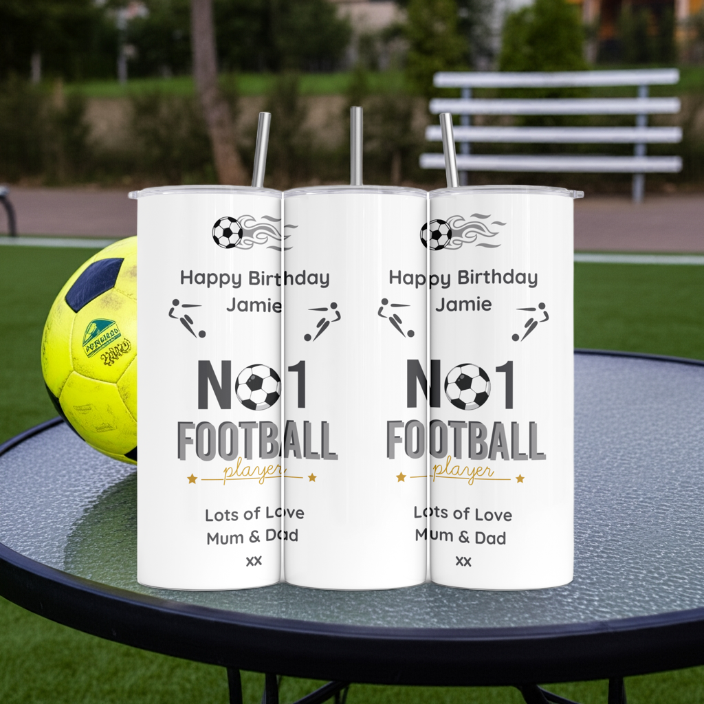 Personalised Tumbler Travel Sports Bottle - No1 Football Player Design