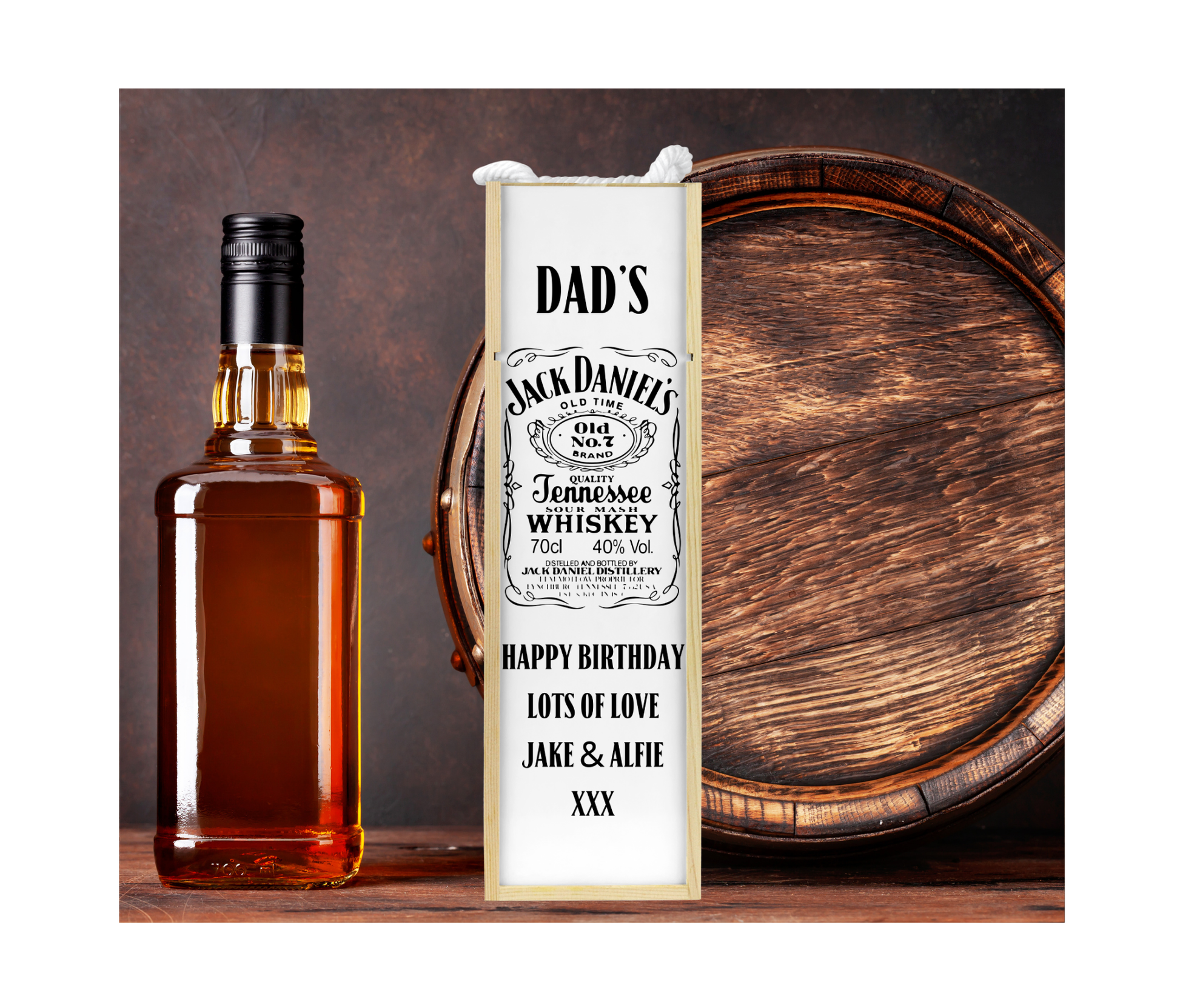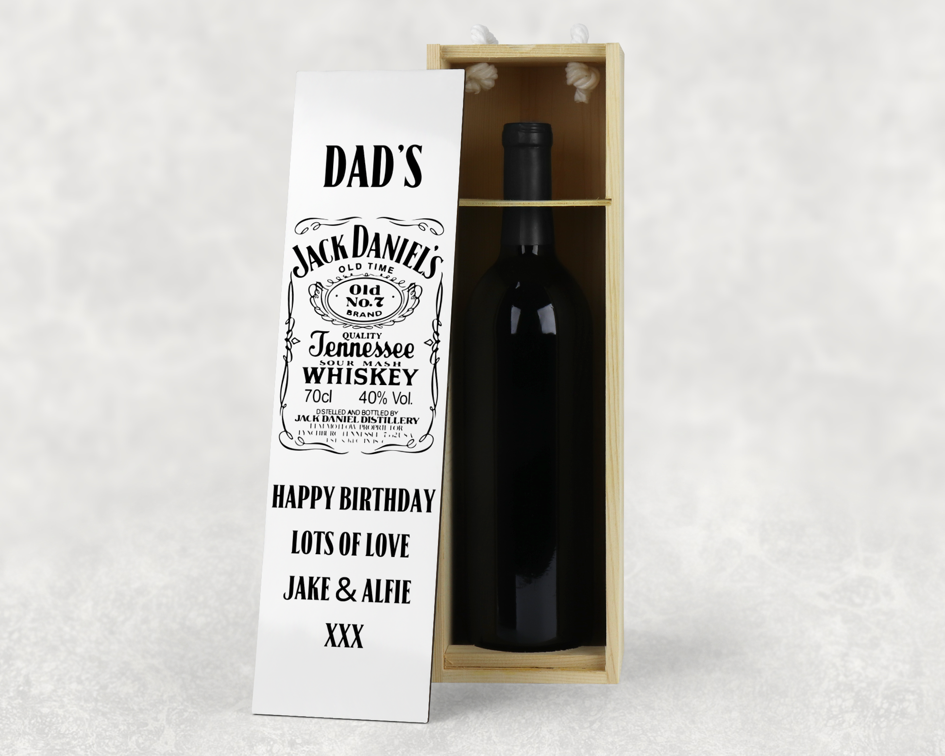 Personalised Wooden Bottle Gift Box - Jack Daniels Design