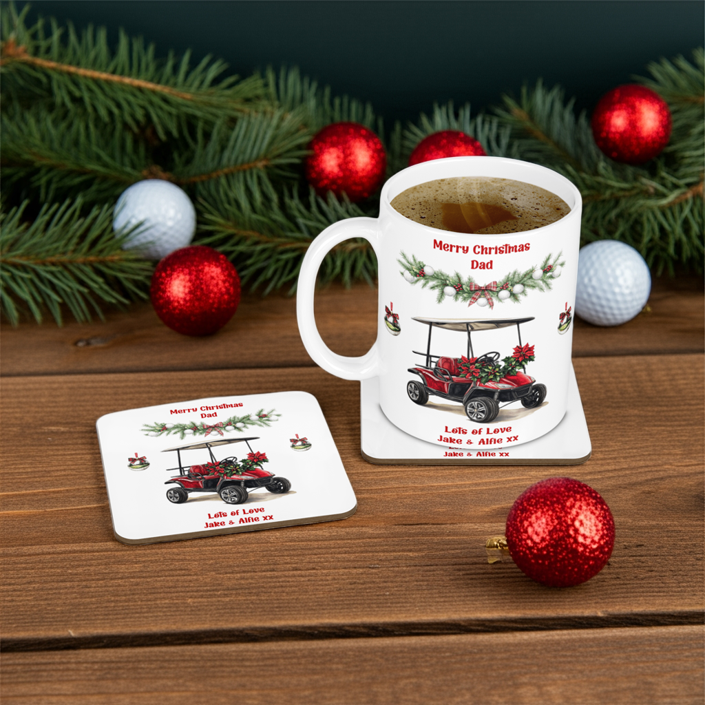 Get into the holiday spirit with our Personalised Christmas Golf Mug & Coaster Gift Set!