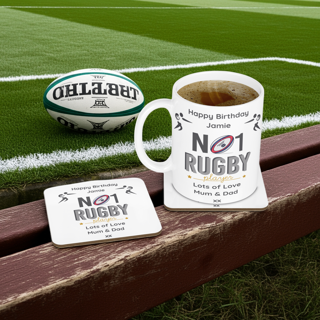 Personalised Mug & Coaster - No1 Rugby Player Design
