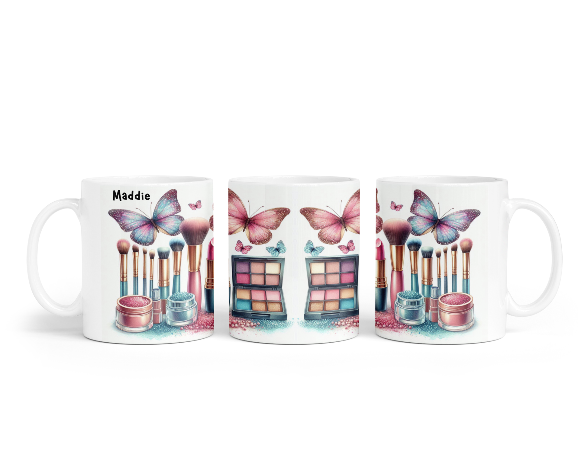 Elevate your coffee break with our charming Personalised Makeup & Butterflies Mug!
