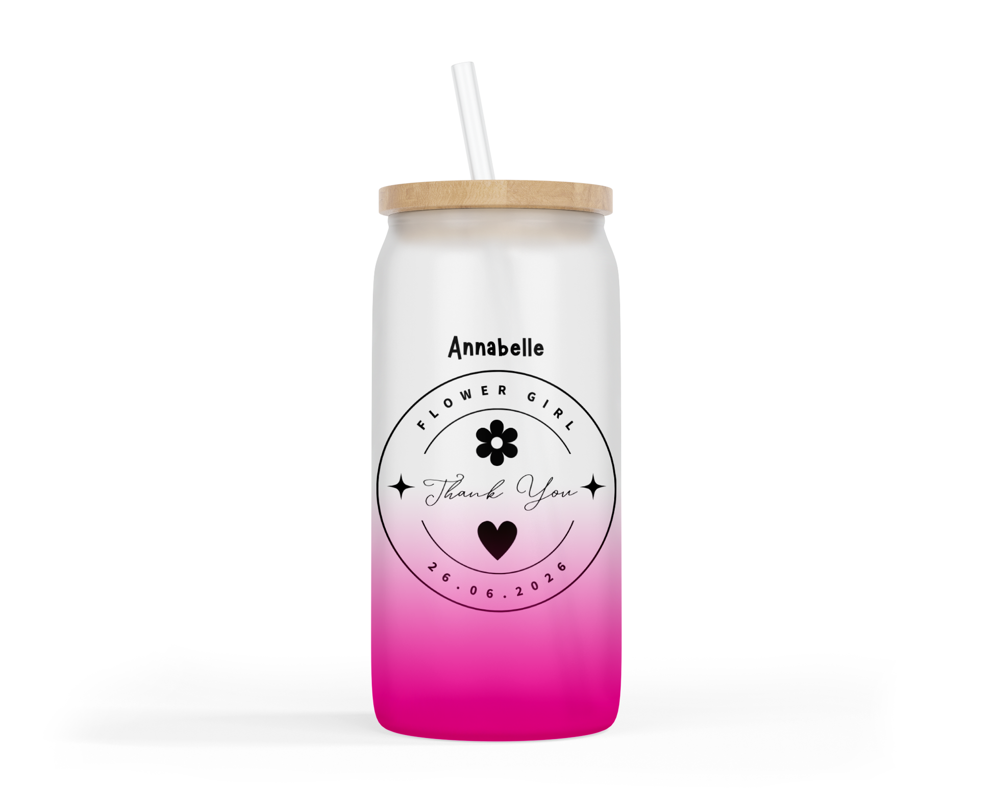 Personalised Ombre Pink Glass Tumbler - Flower Girl Wedding Design