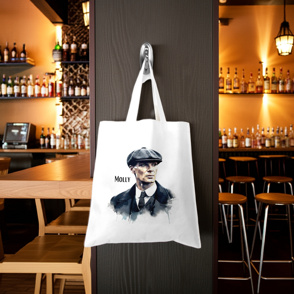 Elevate your accessory game with our Soft Feel White Tote Bag featuring a stunning watercolour portrait of Cillian Murphy as seen in Peaky Blinders.