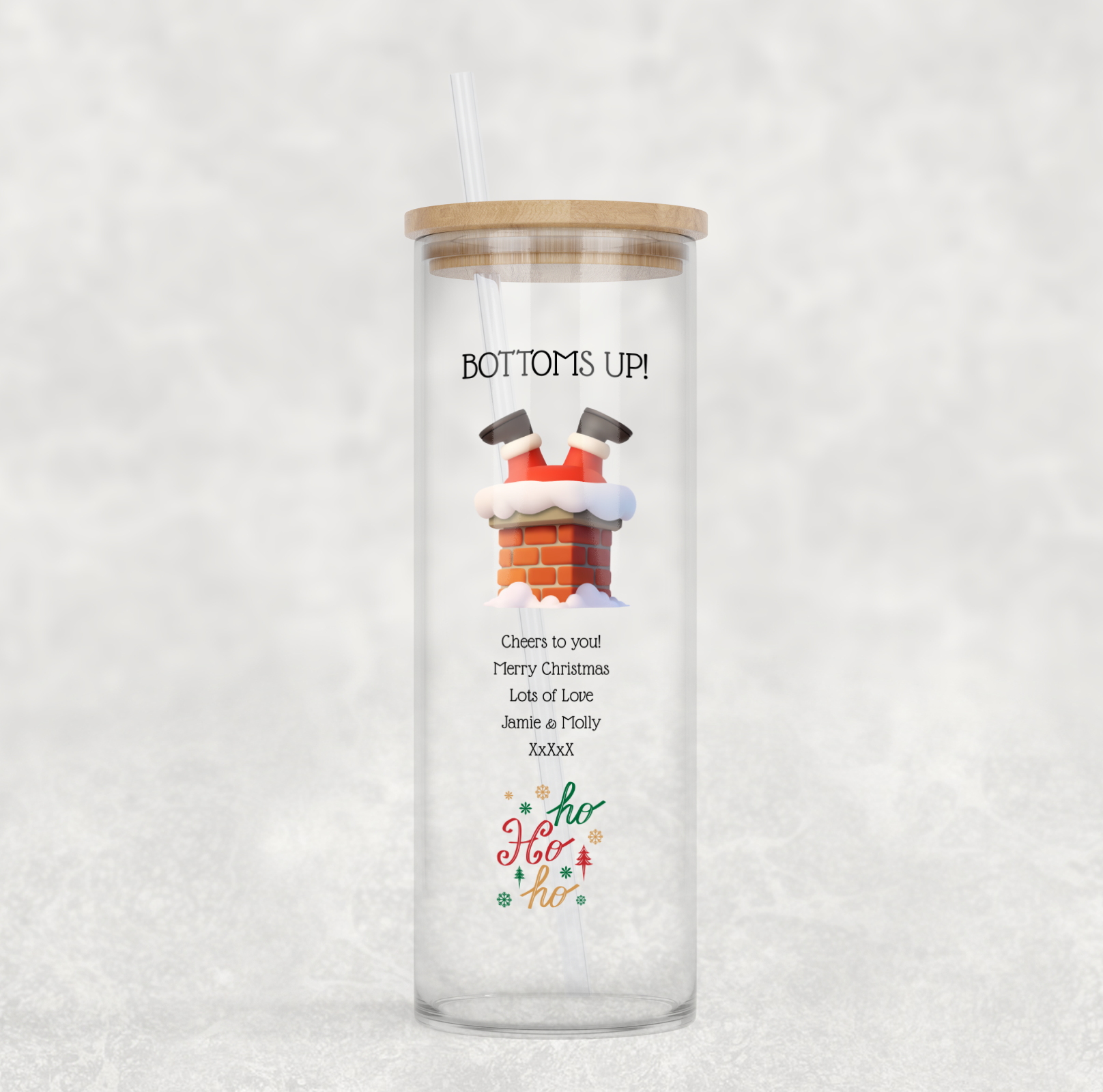 Personalised Tall Glass Tumbler - Bottoms Up Christmas Design