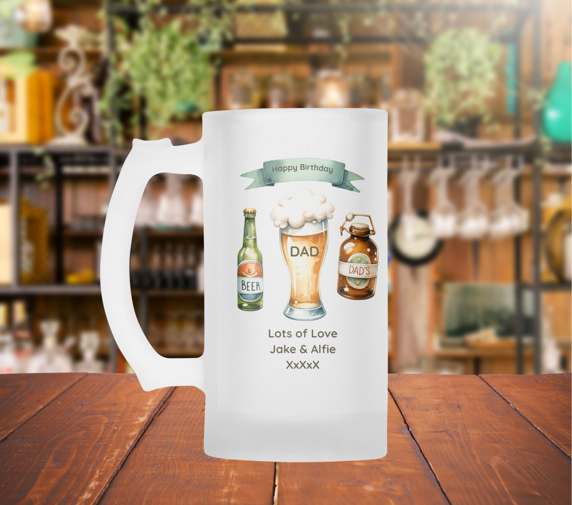 Personalised Frosted Glass Tankard (0.8 Pint) - Beer Design