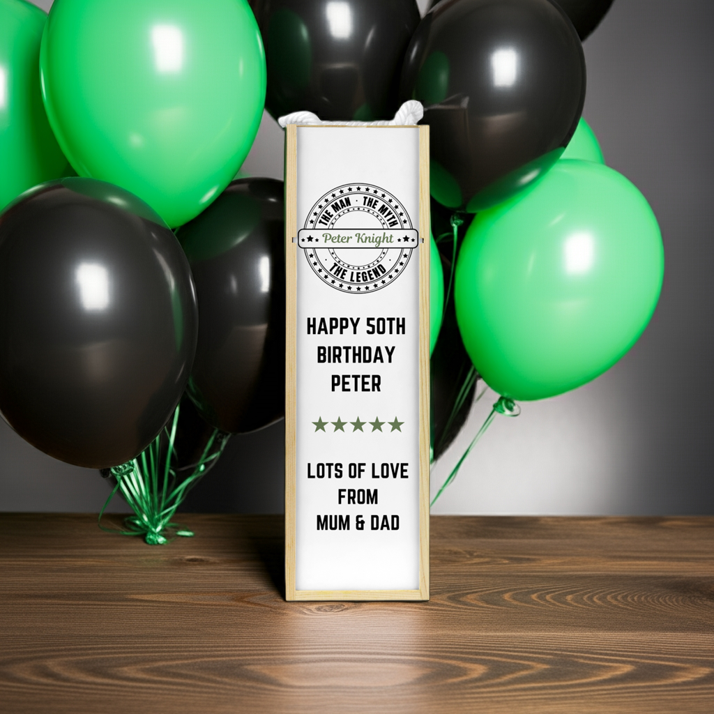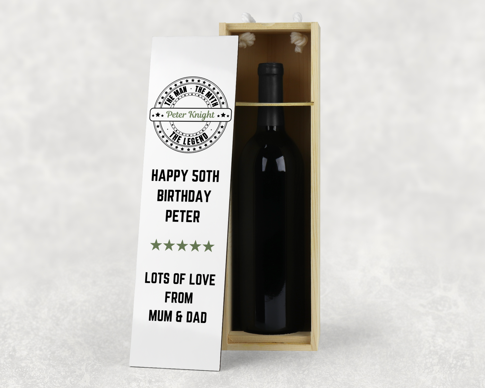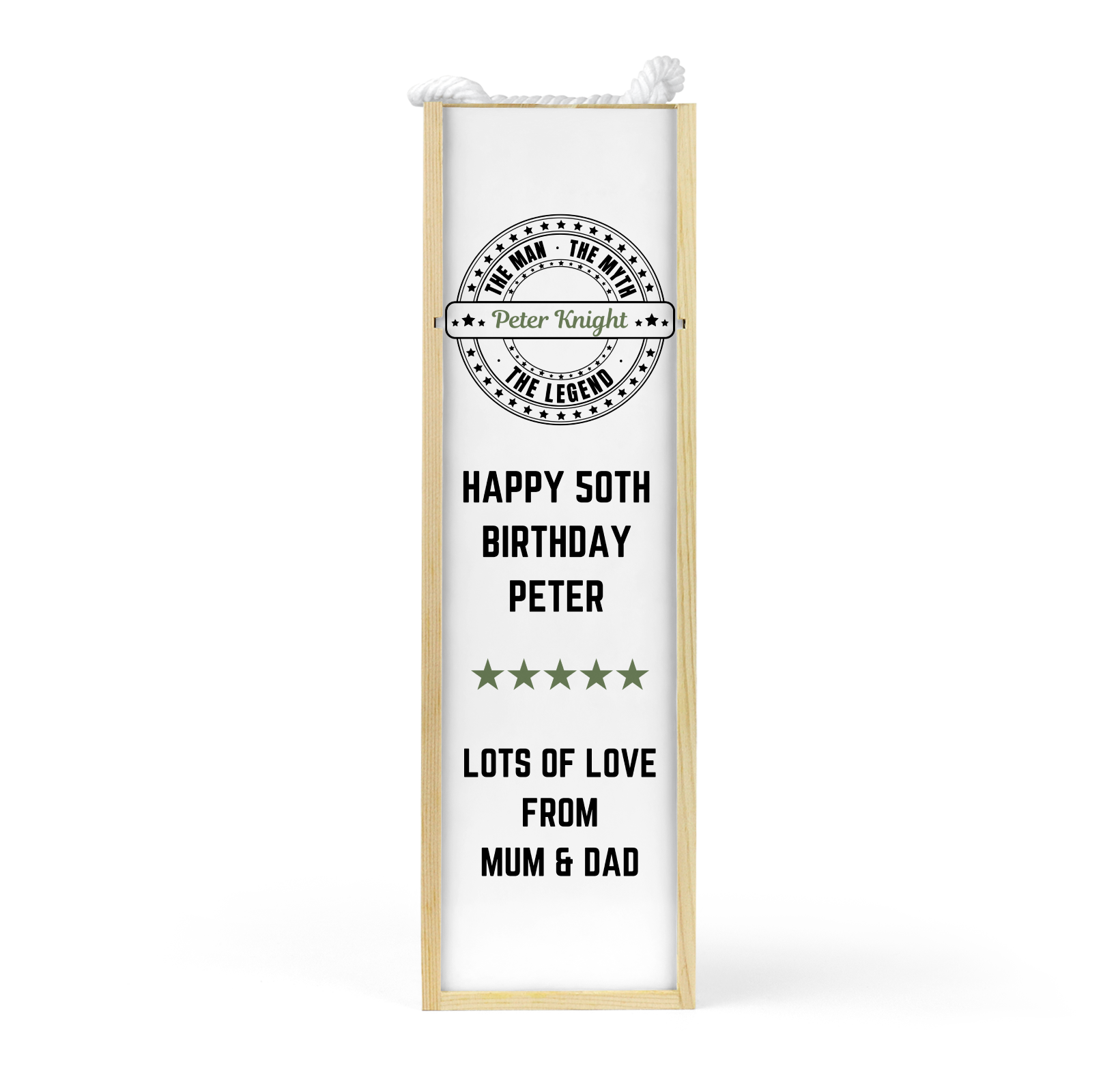 Personalised Wooden Bottle Gift Box - The Man The Myth The Legend Design