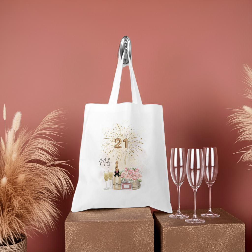 Personalised Tote Shopping Bag - 21st Birthday Champagne Design