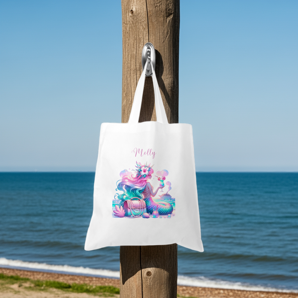 Personalised Tote Shopping Bag - Mermaid Cocktail Design