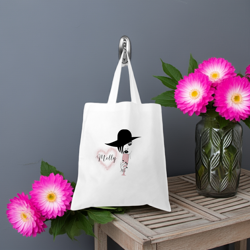 Personalised Tote Shopping Bag - Pink Prosecco Champagne Girl Design