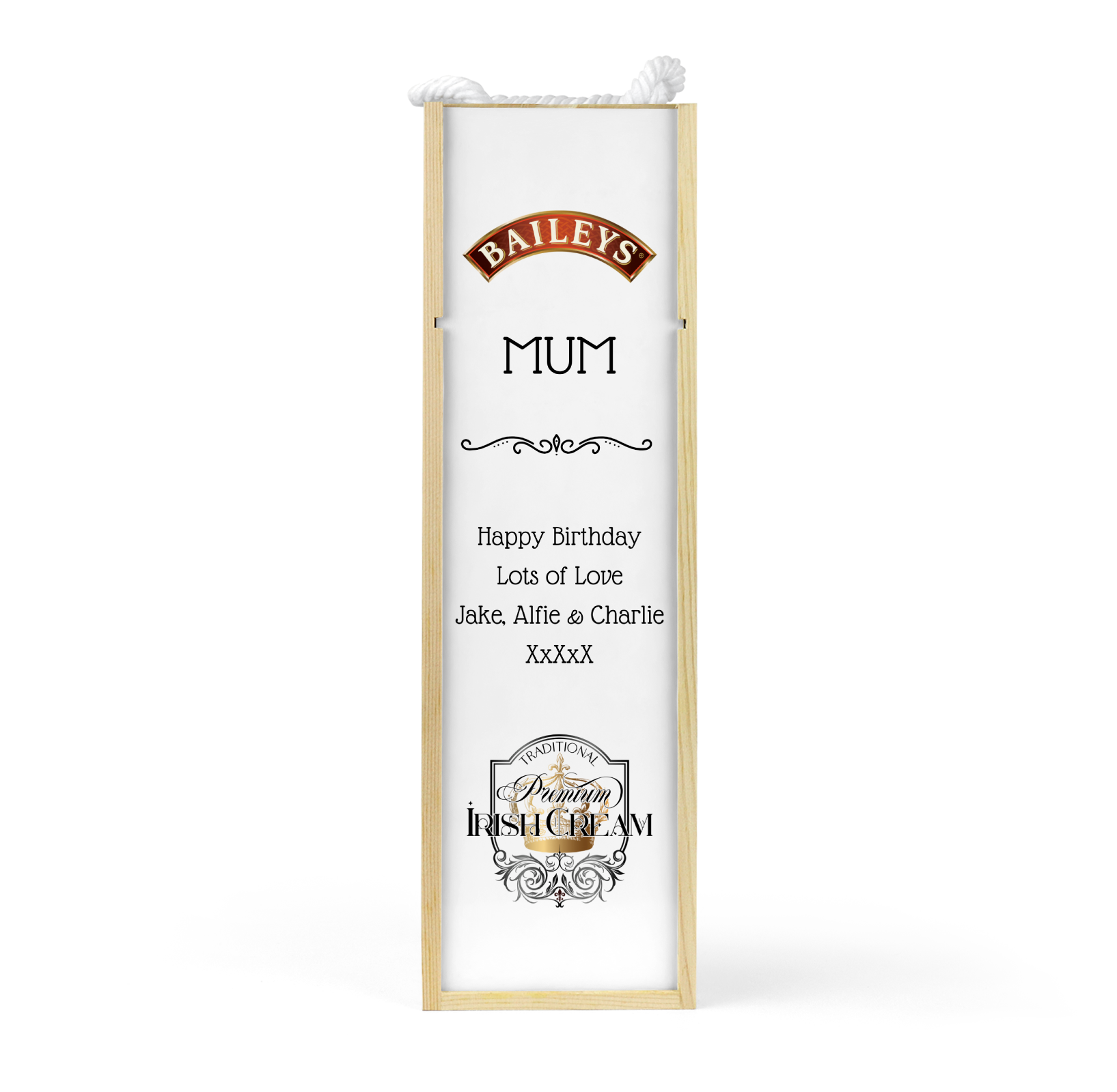 Personalised Wooden Bottle Gift Box - Baileys Design