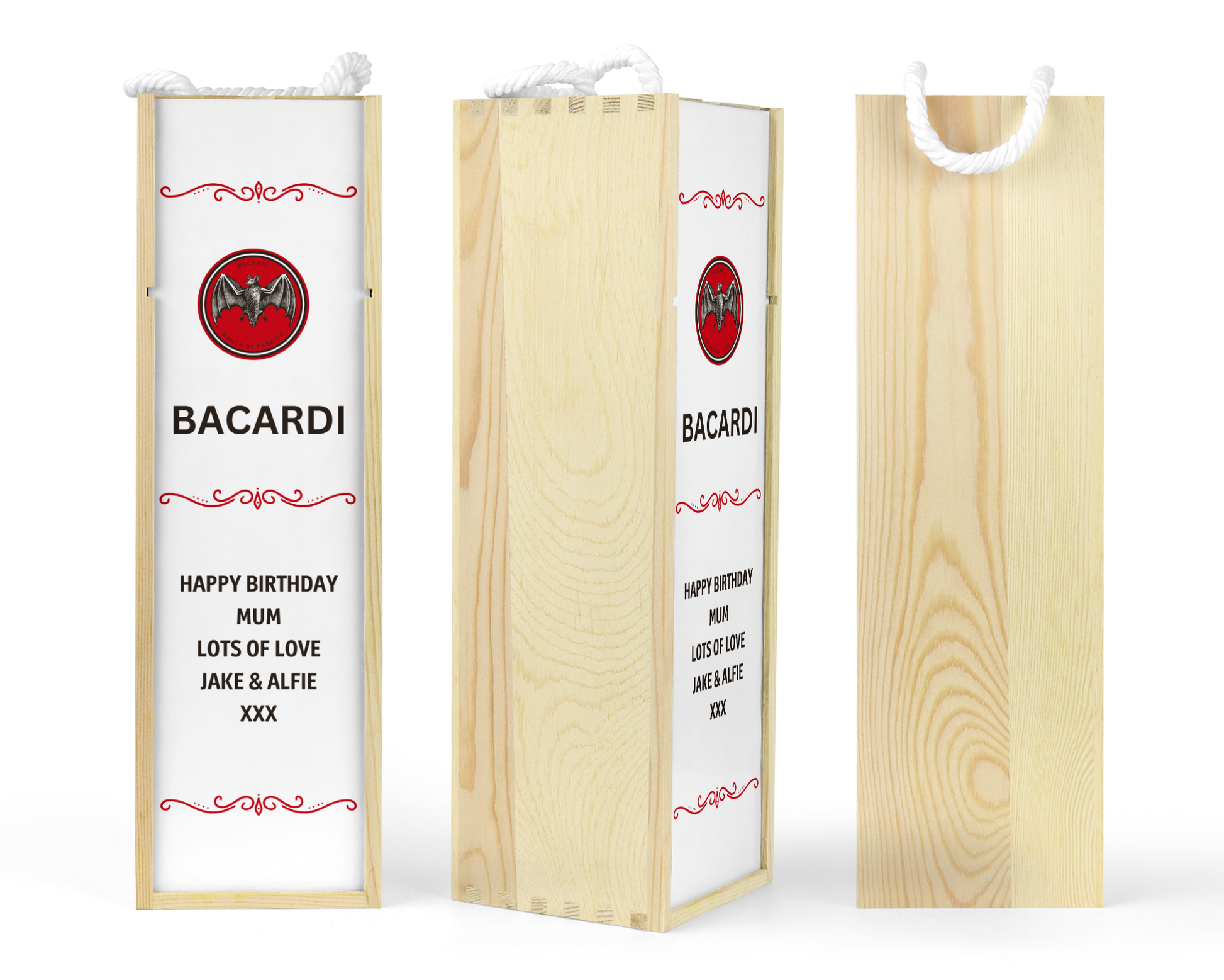 Personalised Wooden Bottle Gift Box - Bacardi Design