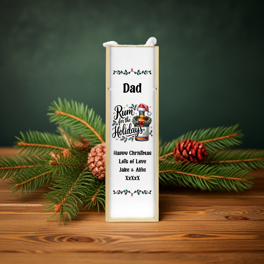 Personalised Wooden Bottle Gift Box - Christmas Rum Design