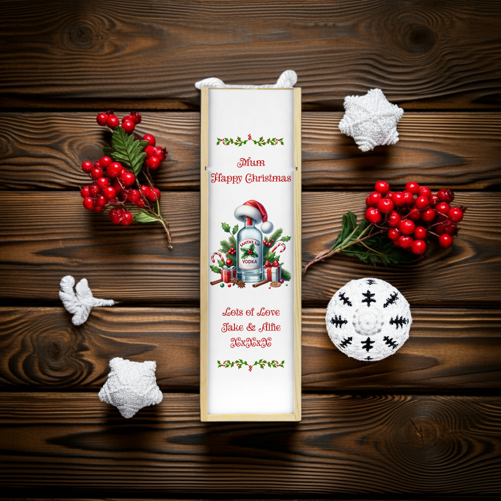 Personalised Wooden Bottle Gift Box - Christmas Vodka Design
