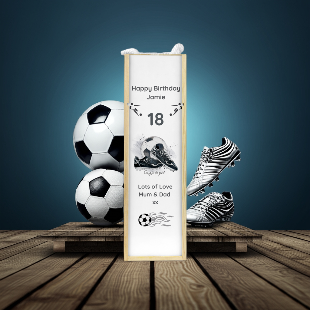 Personalised Wooden Wine Bottle Gift Box - Football Crazy Design