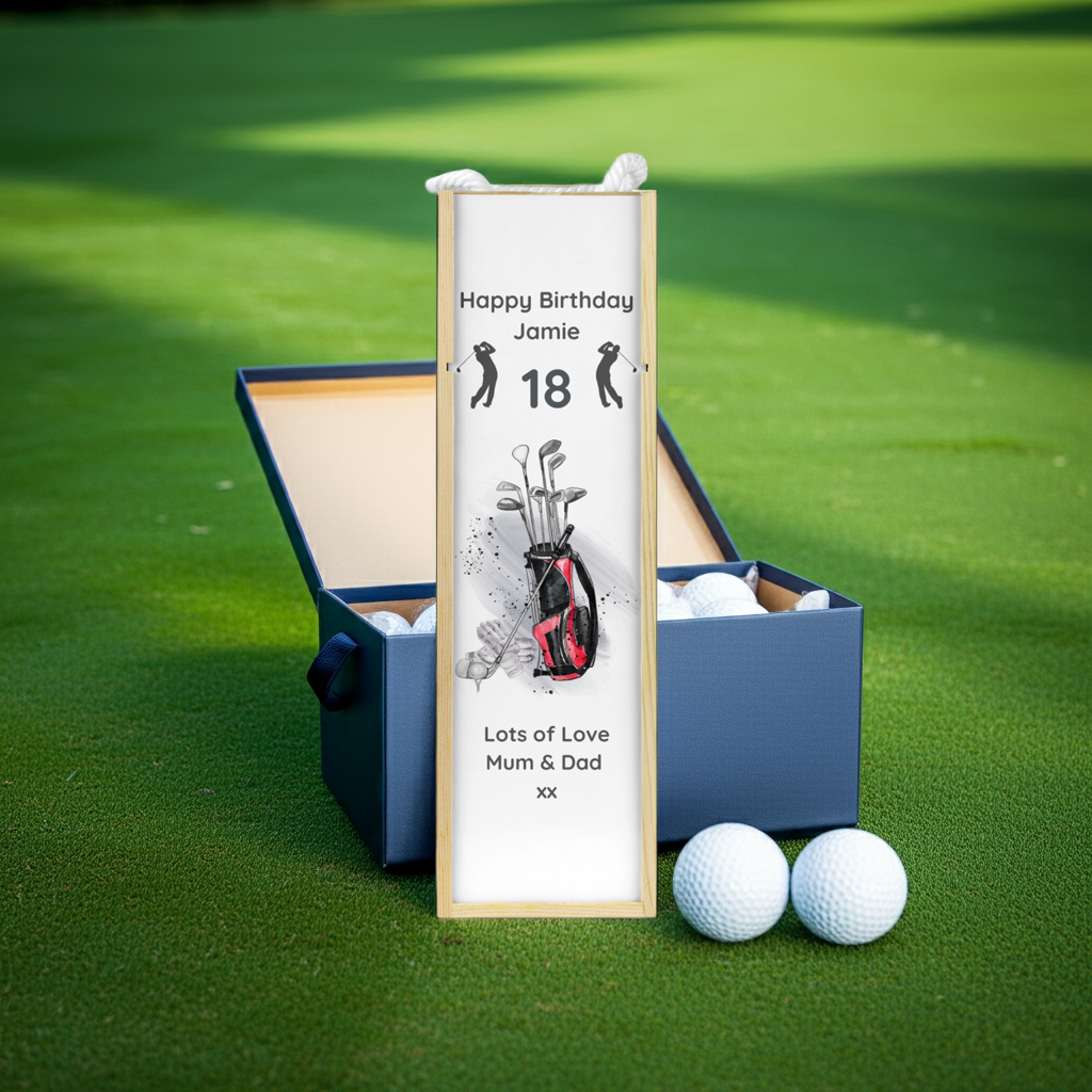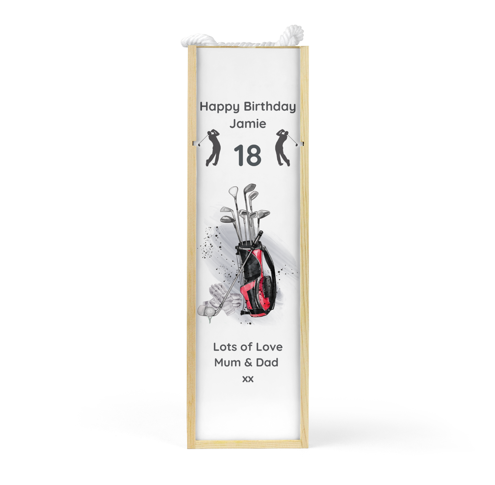 Personalised Wooden Wine Bottle Gift Box - Golf Design
