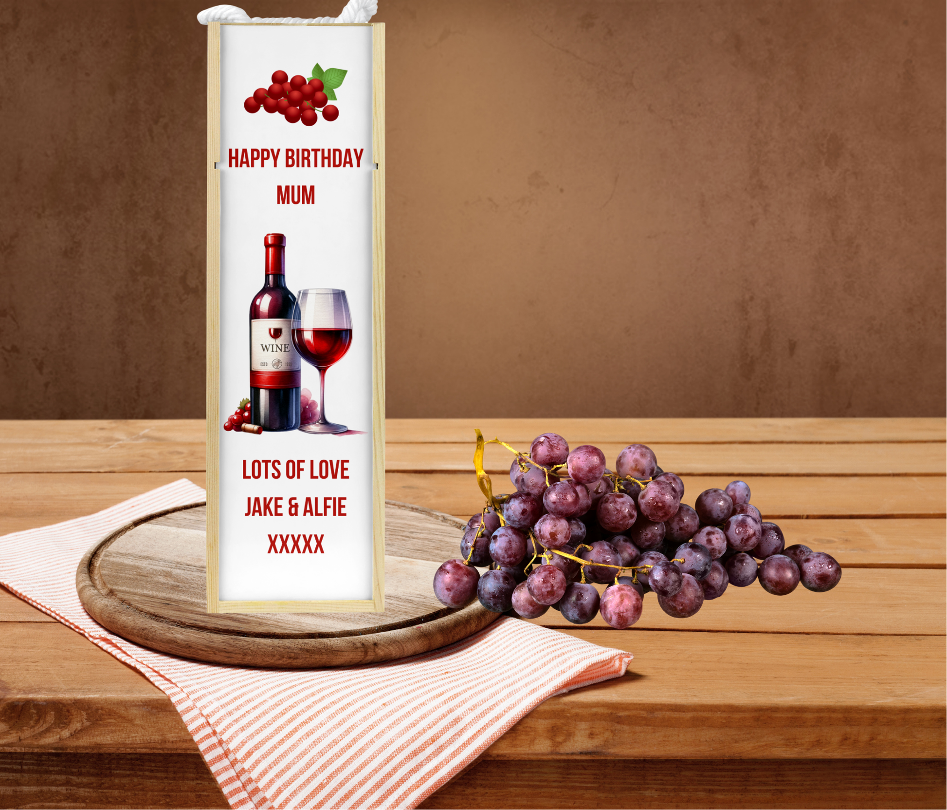 Personalised Wooden Bottle Gift Box - Red Wine Design
