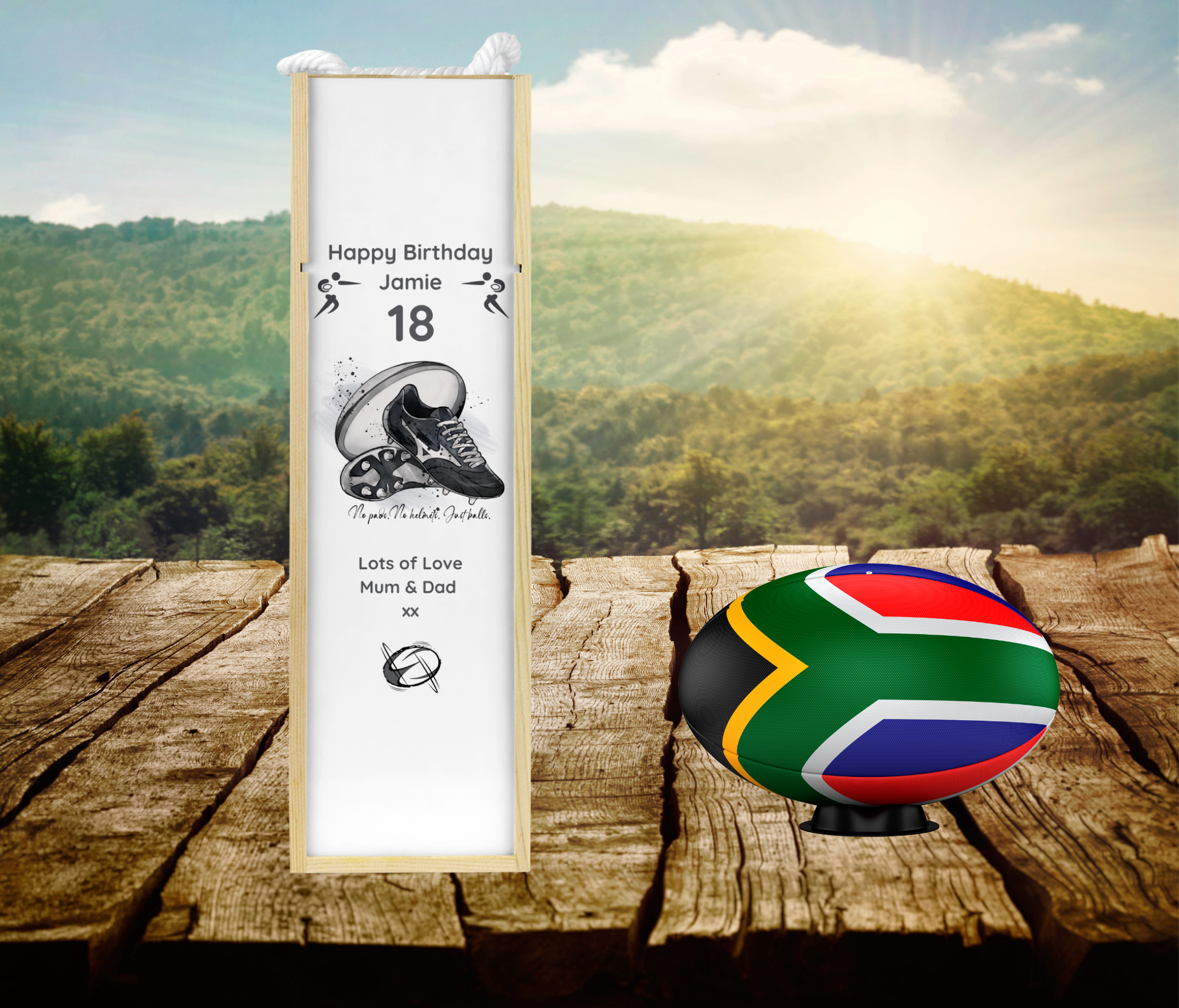 Personalised Wooden Wine Bottle Gift Box - Rugby Design