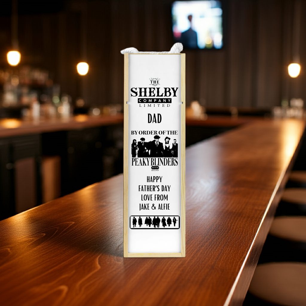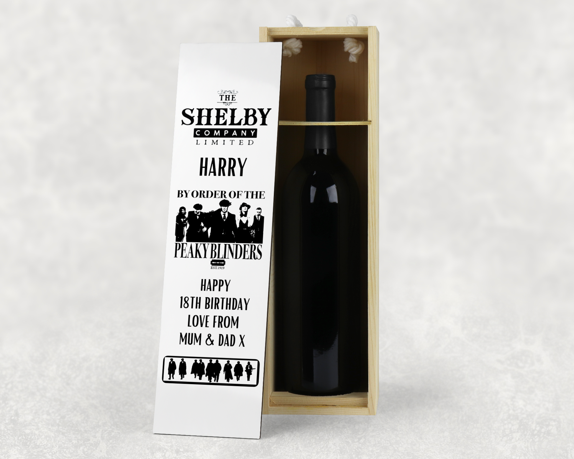 Personalised Wooden Wine Bottle Gift Box - Peaky Blinders Design