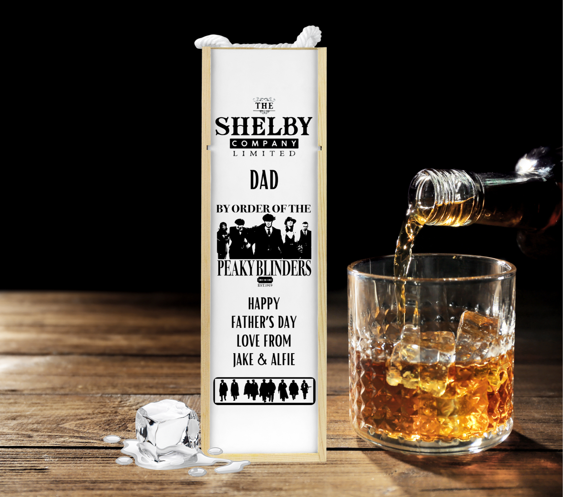 Transform your gift-giving experience with our Peaky Blinders Design Wooden Bottle Gift Box, perfect for any occasion!